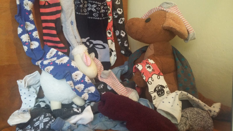 Później zrobiliśmy małą bitwę na latające skarpetki, ale naprawdę malutką, bo zanim się na dobrze rozkręciliśmy, to już nam pani Bożena kazała włożyć amunicję z powrotem do szuflady.