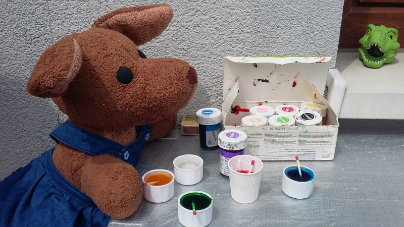 - jakieś malutkie naczynka (ja użyłam nakrętek od butelek),