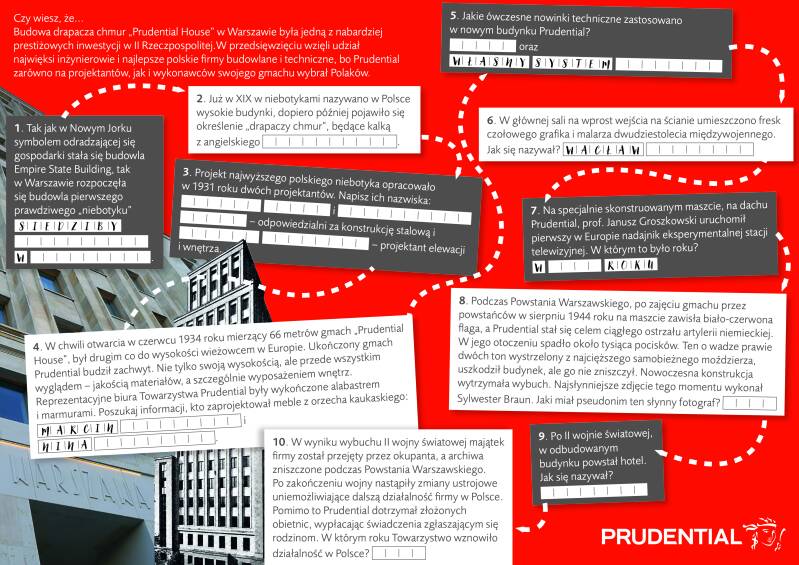 Przed wojną budynek Towarzystwa Ubezpieczeniowego Prudential był najwyższy nie tylko w Warszawie, ale i w Polsce. Przebił go dopiero Pałac Kultury i Nauki wybudowany w 1955 roku. W czasie II Wojny Światowej został trafiony pociskiem, ale mimo to nie został zburzony, tylko odchylił się od pionu.