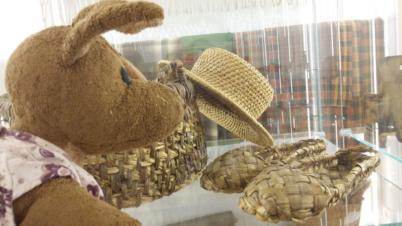 W muzeum było też wiele innych bardzo ciekawych eksponatów, np.: guziki z masy perłowej, albo sukienka małej dziewczynki z 1938 roku... bardzo zainteresowały mnie buty zrobione z łyka - takie buty nazywają się kurpie i od ich nazwy pochodzi nazwa regionu - właśnie Kurpie. Ciekawe, czy są wygodne takie kapciuszki?
