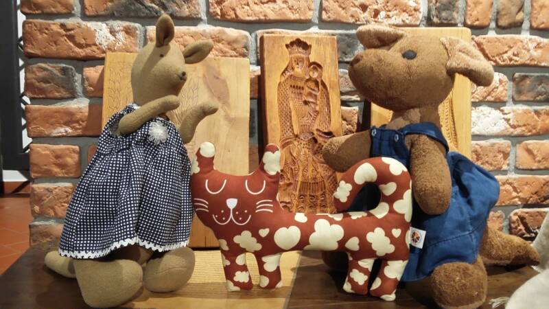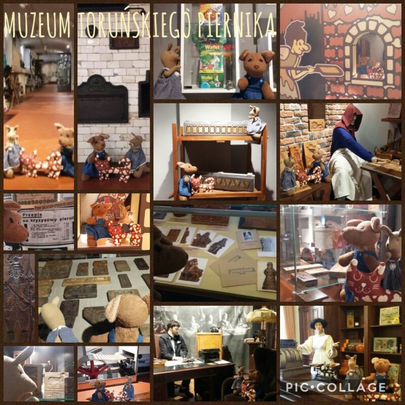 Dziś wybrałyśmy się do Muzeum Toruńskiego Piernika i poznałyśmy historię tych cukierniczych pyszności. Naszym przewodnikiem był piernikowy kot, który o piernikach wie wszystko. Razem z nim obejrzałyśmy dokładnie wszystkie drewniane piernikowe formy - my, jeśli zabieramy się za wypiek ciastek, używamy zupełnie innych. Kot pokazał nam dawne piernikowe piece i jak wygląda wypiekanie pierników w fabryce. Dał nam do powąchania piernikowe przyprawy, zaprowadził do sali z opakowaniami do ciastek i z grającymi piernikowymi pocztówkami. Przez chwilę nawet bawiłyśmy się w sklep - ja sprzedawałam pierniki, a ciocia kupowała.