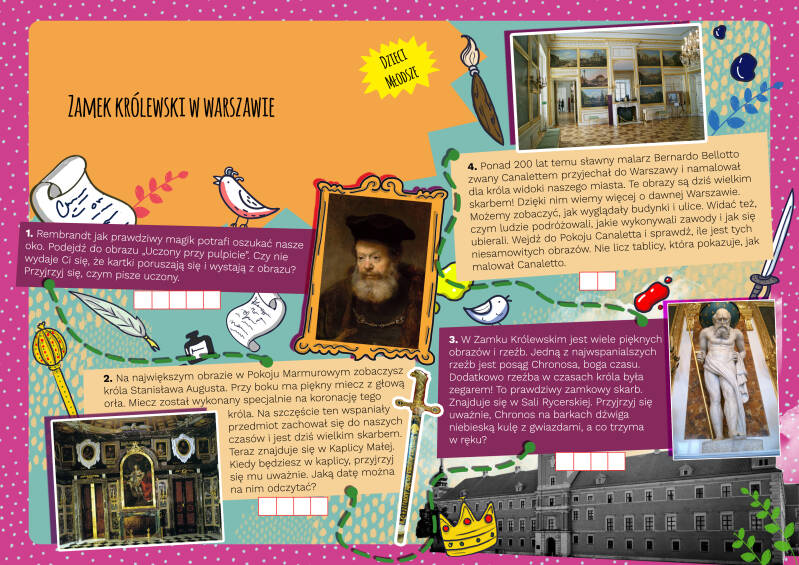 Teraz w zamku możemy podziwiać dzieła słynnych malarzy, przepiękne zegary, rzeźby, ale również królewskie komnaty. Bardzo mnie zdziwiło to, że królowie spali na takich małych łóżkach, ale ciocia Adela mi wytłumaczyła, że w tamtych czasach spało się bardziej na siedząco niż na leżąco. Ciekawe, czy naprawdę było im wygodnie?