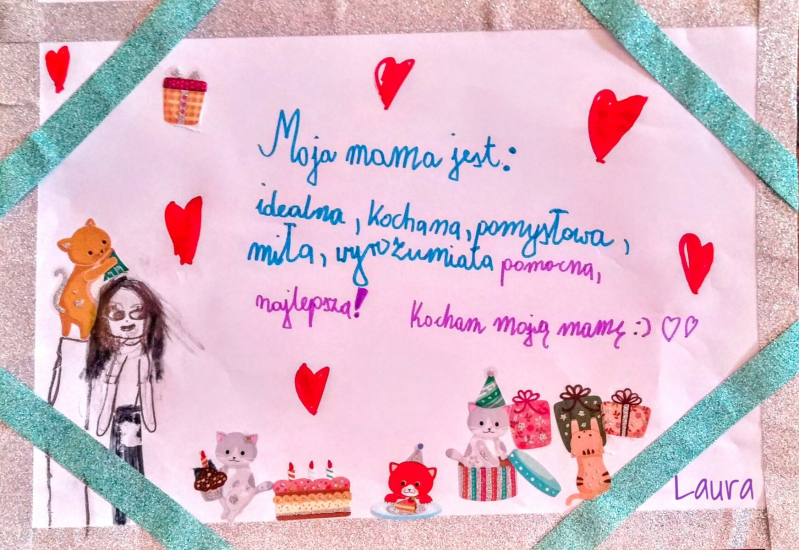 "Alicjo, to naleśniki dla Ciebie. Emilka zrobiła ciasto, mama smażyła a Lenka ozdabiała te przysmaki. Smacznego!!"