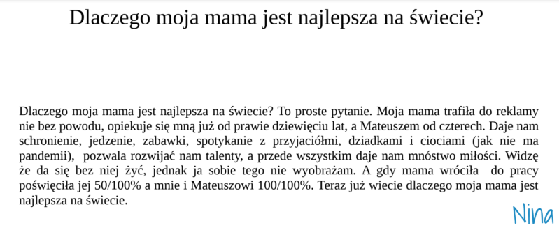 Pierwsza praca nadesłana przez Jasia