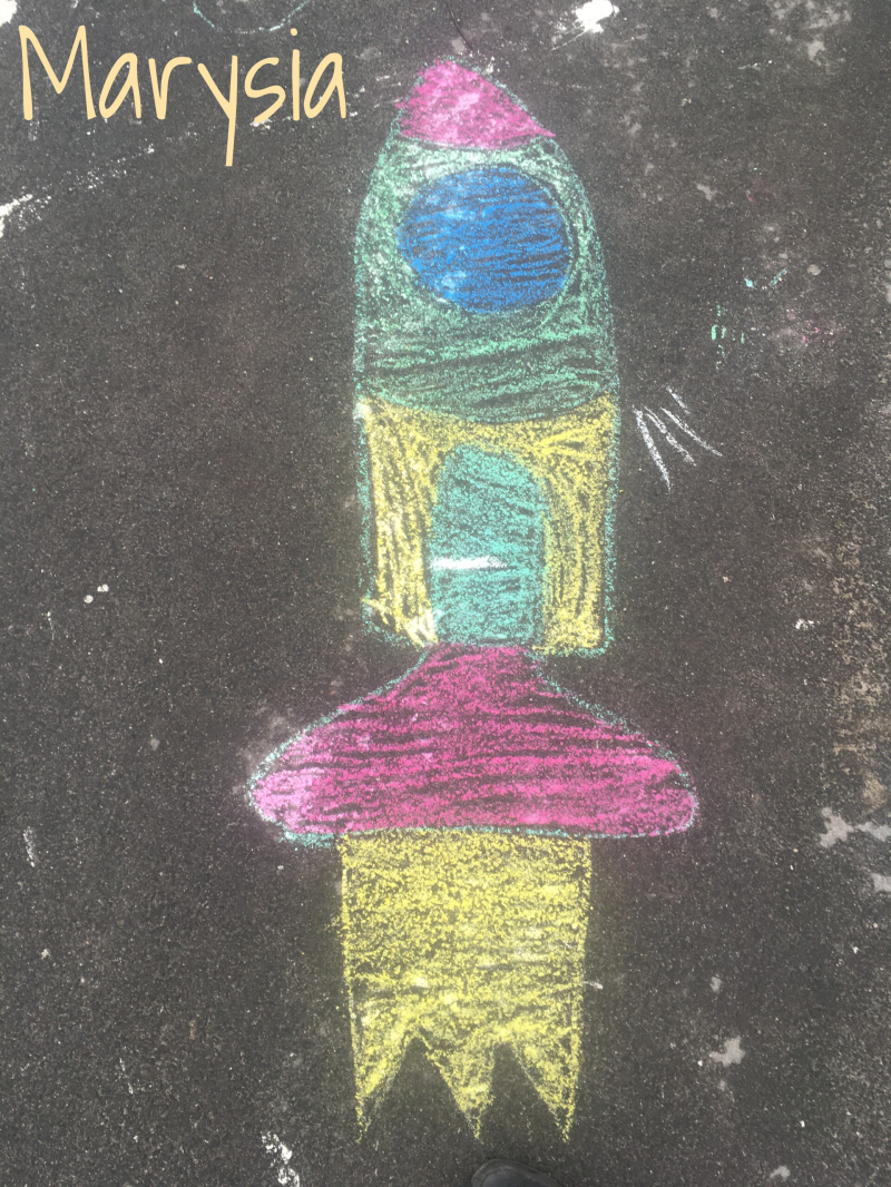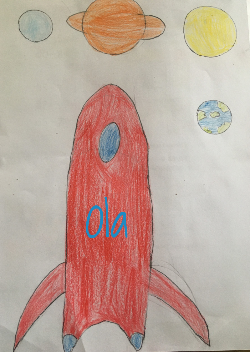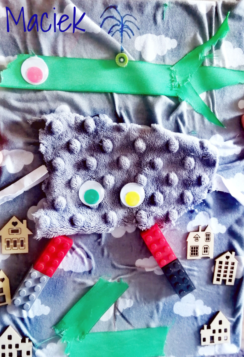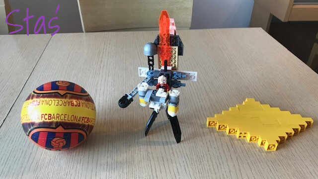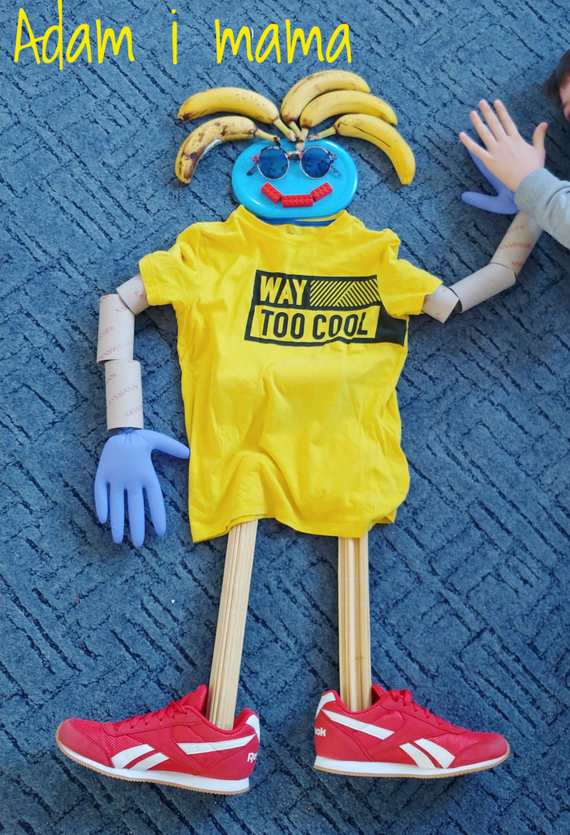 Nie wiem, jak Wam, ale mi podróże w kosmos kojarzą się z robotami. Bardzo spodobał mi się pomysł, żeby wydrukować robota za pomocą klocków lego. Potrzebna jest kartka, ciemna farba plakatowa, kredki i klocki (a później mydło i woda, żeby klocki umyć).