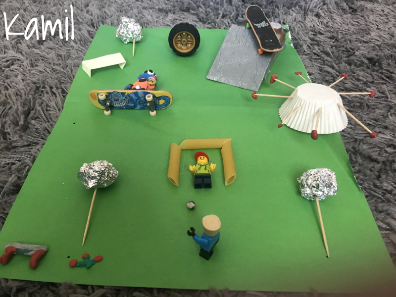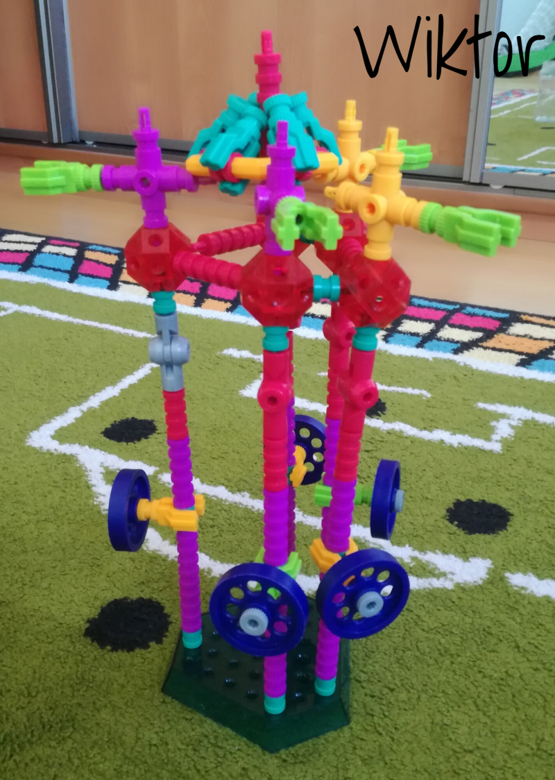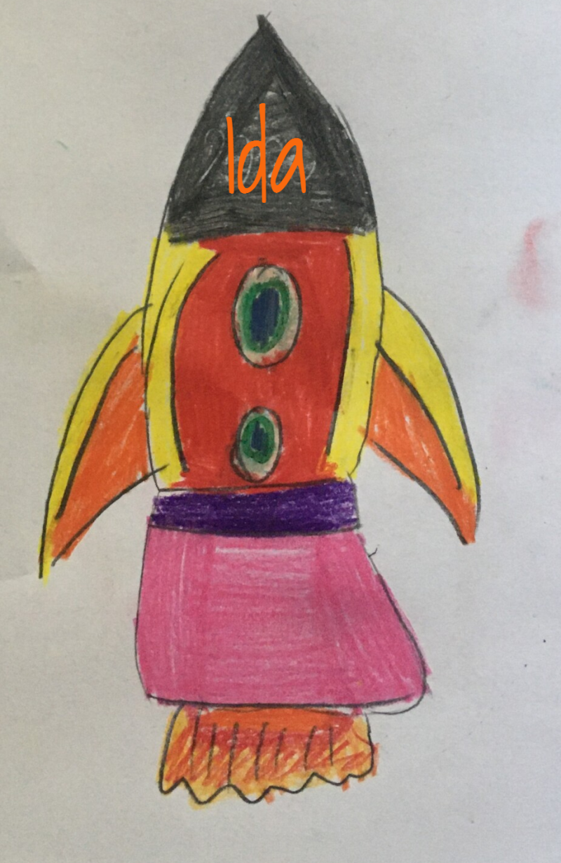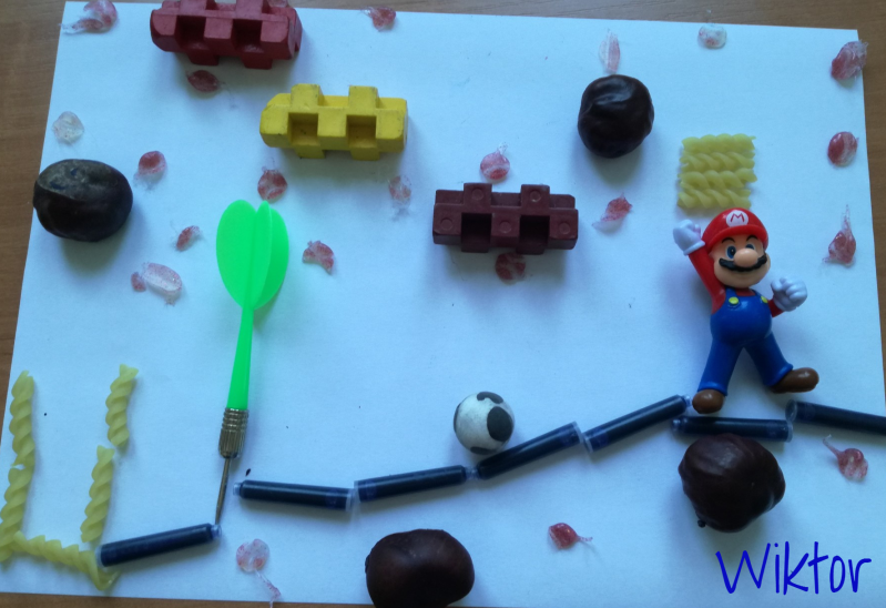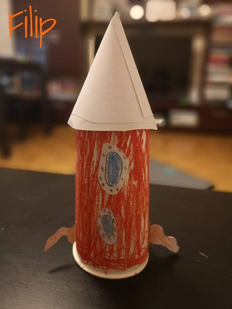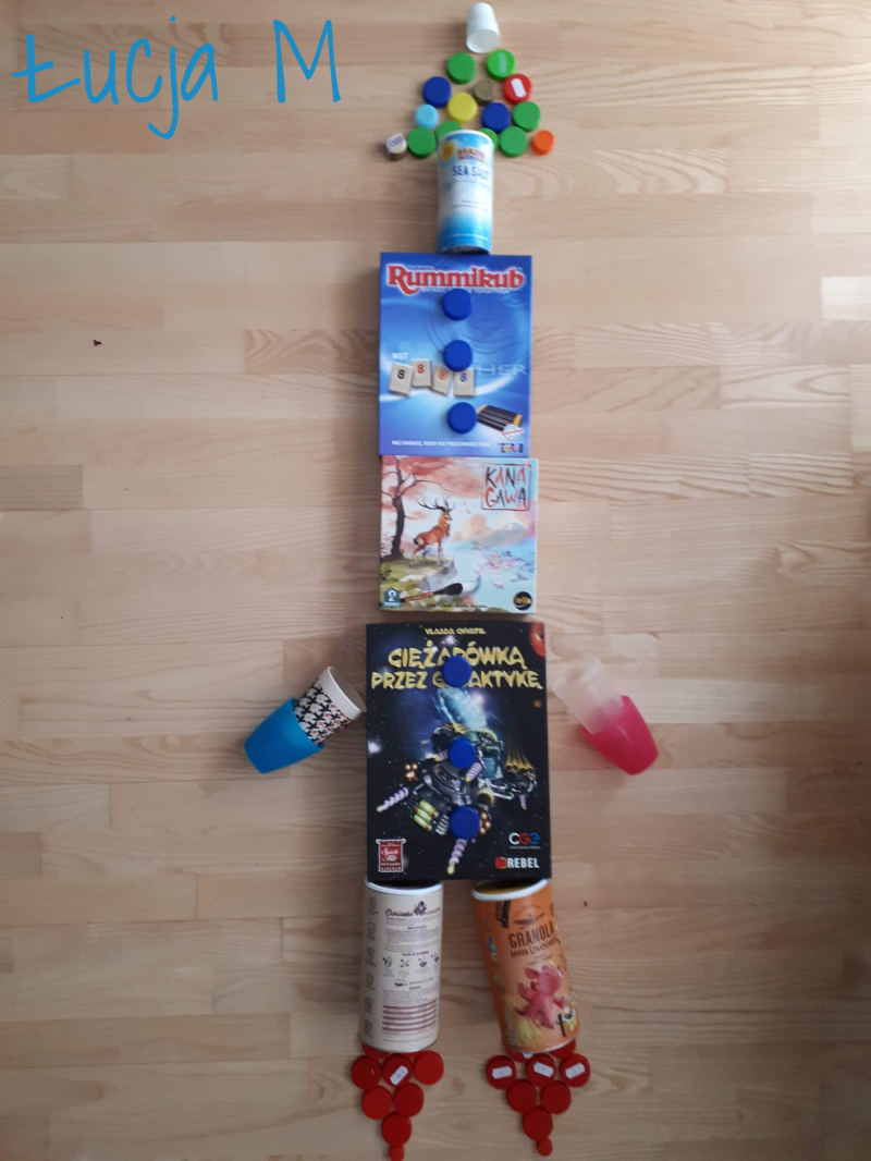 Nie wiem, jak Wam, ale mi podróże w kosmos kojarzą się z robotami. Bardzo spodobał mi się pomysł, żeby wydrukować robota za pomocą klocków lego. Potrzebna jest kartka, ciemna farba plakatowa, kredki i klocki (a później mydło i woda, żeby klocki umyć).