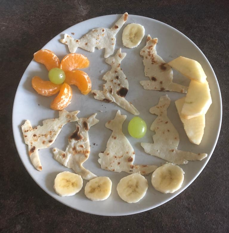 Śniadaniowa żyrafka Emilki. Tak, tak, wiem, że to nie kangurzyca, ale jest tak śliczna, że i dla niej znalazło się miejsce w galerii.