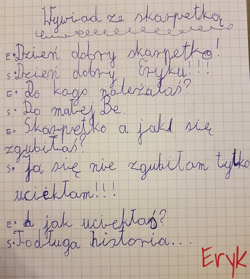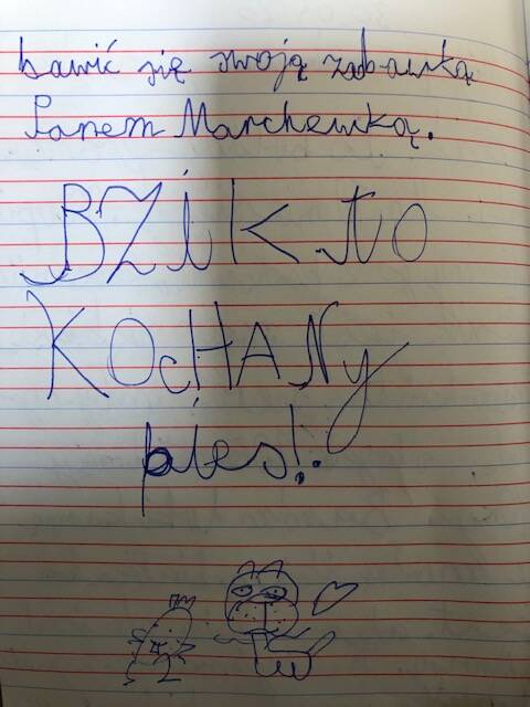 Dziś wymyślamy opowiadanie, które zapisujemy w zeszycie do języka polskiego. Historia musi zawierać słowa: ZAMEK, BABKA, RÓG, PIÓRO, PĄCZEK.