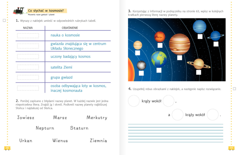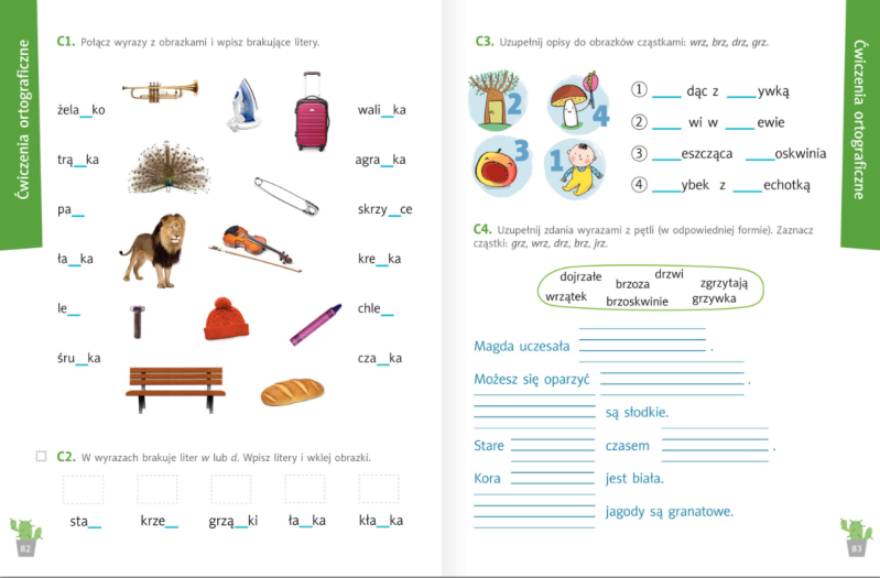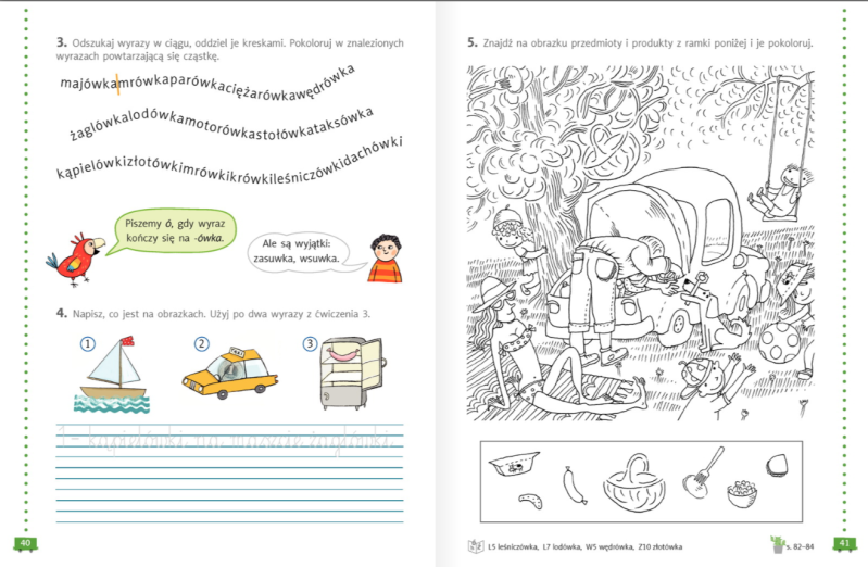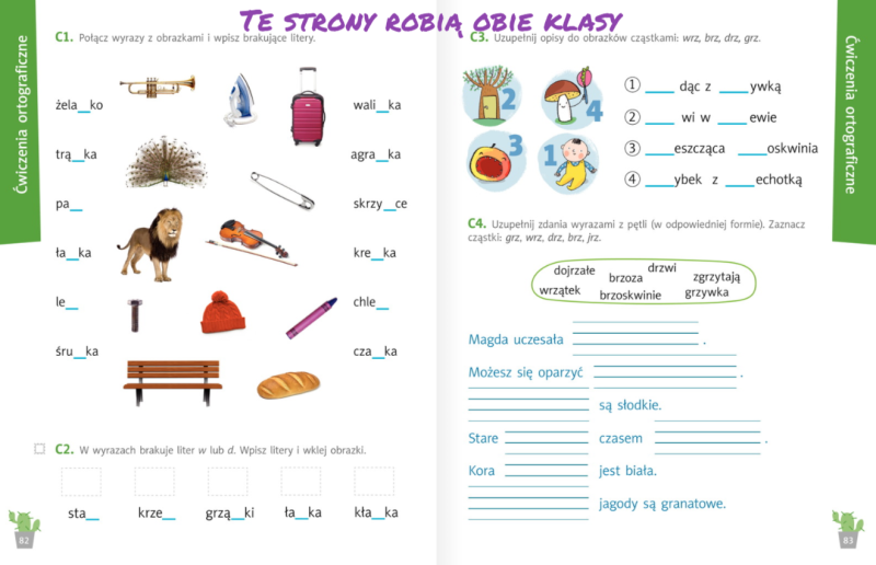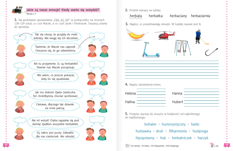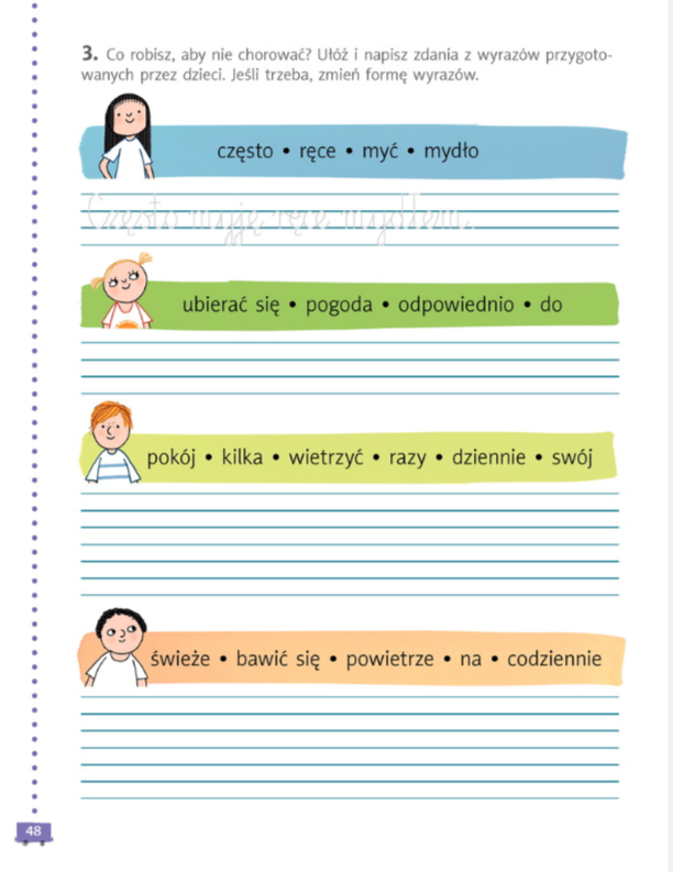 Następnie uzupełniamy ćwiczenia ze stron 48-49 oraz ćwiczenia ortograficzne na stronie 85.