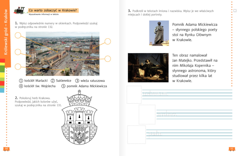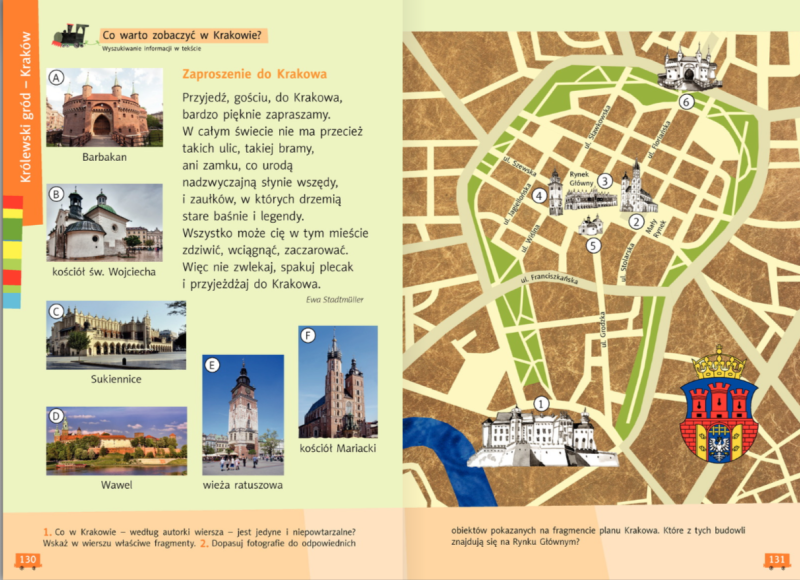 Ciąg dalszy krakowskiej wyprawy. W ćwiczeniach rozwiązujemy zadania ze stron 58-61 oraz ćwiczenia ortograficzne ze strony 86.