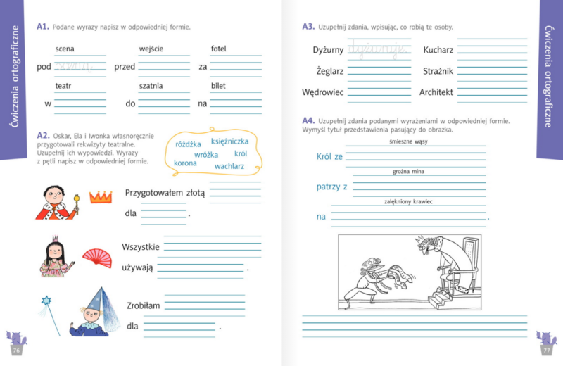W ćwiczeniach robimy zadania ze stron 76-77.