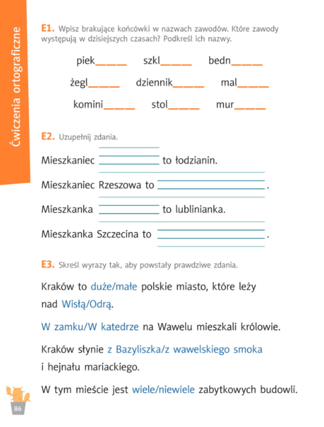 Wypełniamy też ćwiczenia ortograficzne na strona 87-88.