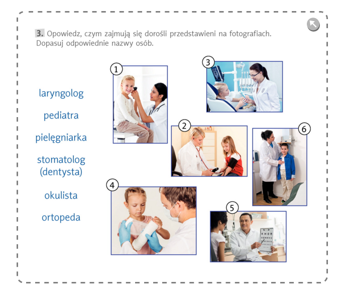 Zadanie dla chętnych i mających drukarkę: drukujemy kartę pracy dla klasy 2a, wycinamy nazwy specjalizacji lekarskich i informacje o nich, a następnie dopasowujemy i wklejamy do zeszytu do języka polskiego.