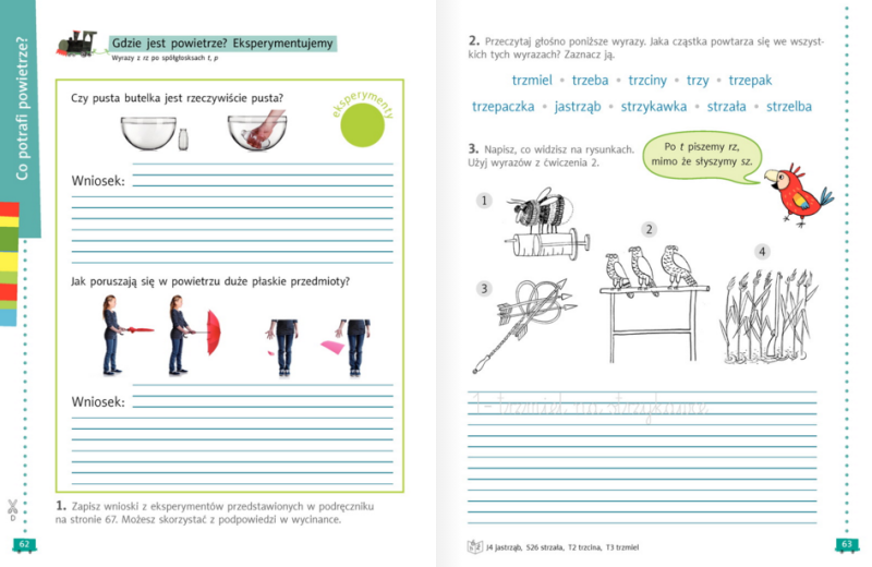Sięgamy też do wycinanki A na końcu ćwiczeń. Wycinamy zadanie do strony 17 i rozcinamy i wklejamy odpowiednio dopasowane do zeszytu do języka polskiego.