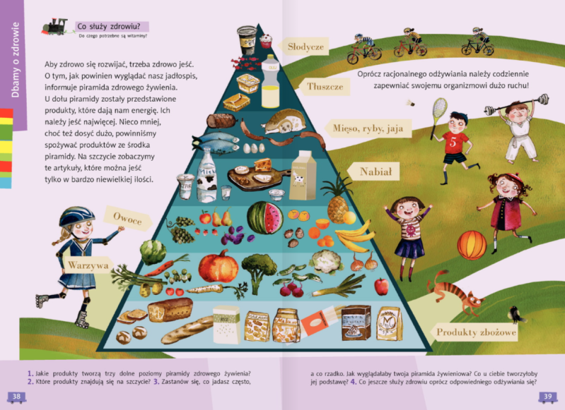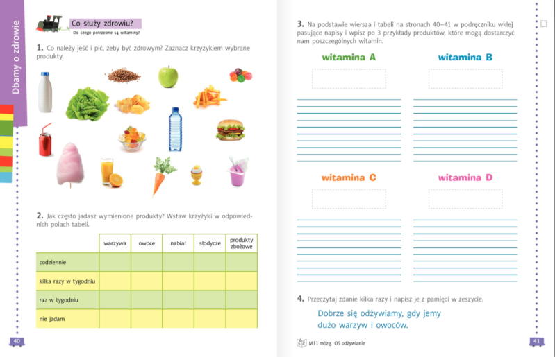 Zajrzyj też do podręcznika na strony 38 - 41. Przypomnij sobie nasze plakaty o warzywach i owocach i to jak z Cieszkiem pisaliśmy, gdzie można znaleźć witaminy. Z filmiku dowiesz się więcej o odkrywcy witamin - Kazimierzu Funku.