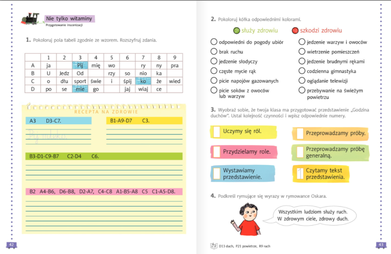 Nadal jesteśmy w tematach związanych ze zdrowiem - wszystko jak najbardziej na czasie. Najpierw zajrzyjcie do podręcznika na strony 42-43 i przeczytajcie tekst o duchu.