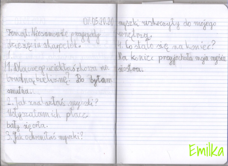 Następnie czytamy wiadomości z karty pracy i odpowiadamy na pytania w zeszycie do języka polskiego (pamiętajcie o dacie).