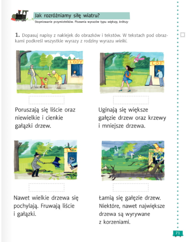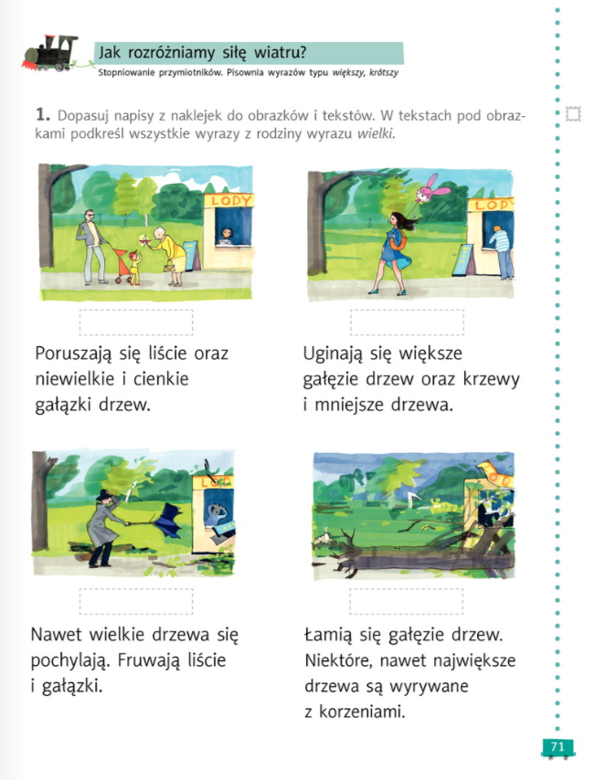W ćwiczeniach robimy strony 70 i 71.
