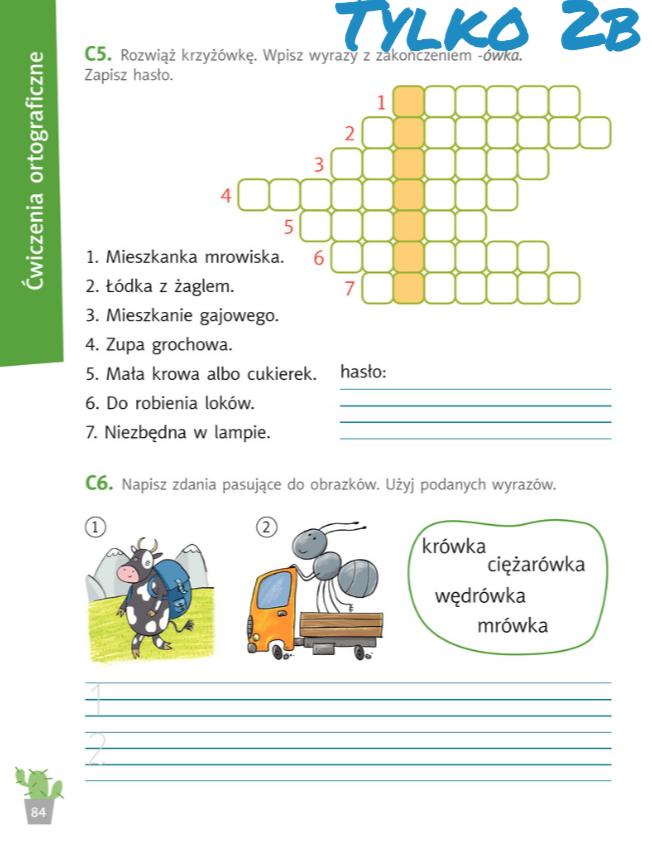 UWAGA! Klasa 2a robi w zeszycie zadanie 4, a klasa 2b - zadanie 6.