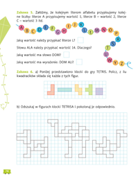 Rozwiązujemy zadania z ćwiczeń ze strony 78. Chętne osoby mogą też rozwiązać zagadki matematyczne Alicji.